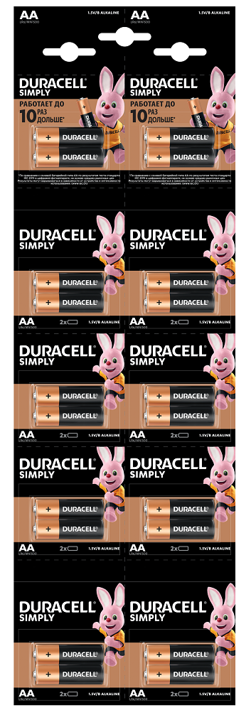 Характеристики Батарейка DURACELL LR06 MN1500 уп. 1х2 шт. відривна (плакат 2х10)