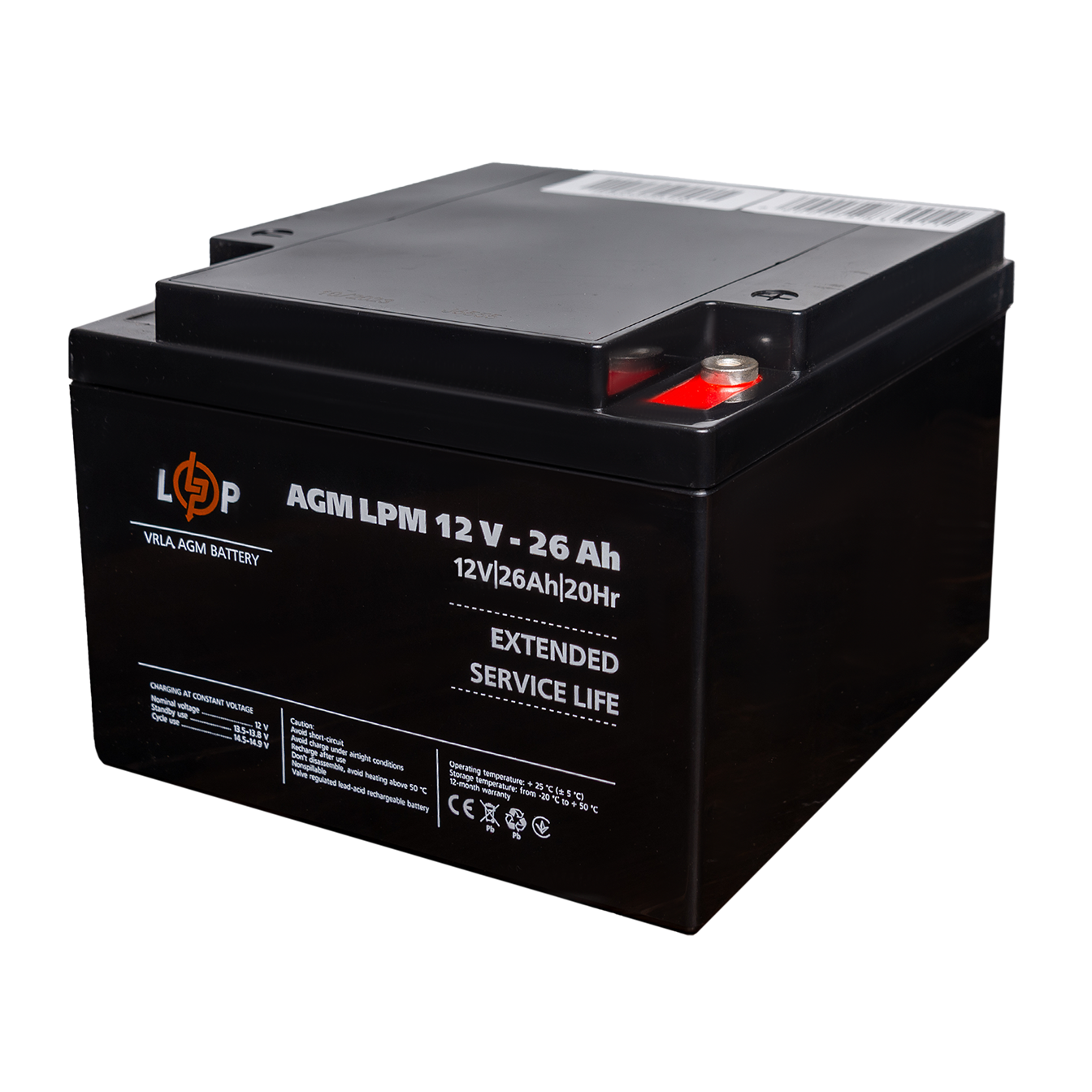 Описание Аккумулятор AGM LPM 12V - 26 Ah под болт М5