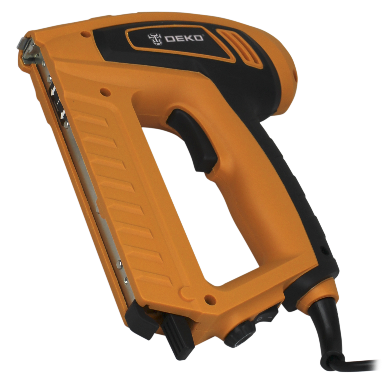 Электрический степлер DEKO отличается совместимостью и портативностью. Этот степлерный пистолет с упором на эргономику гарантирует комфорт. Изготовлен из прочных материалов, отличается хорошим качеством и прочностью. Оборудован ручкой регулировки мощности, пользователи могут регулировать мощность в соответствии с различными потребностями работы.