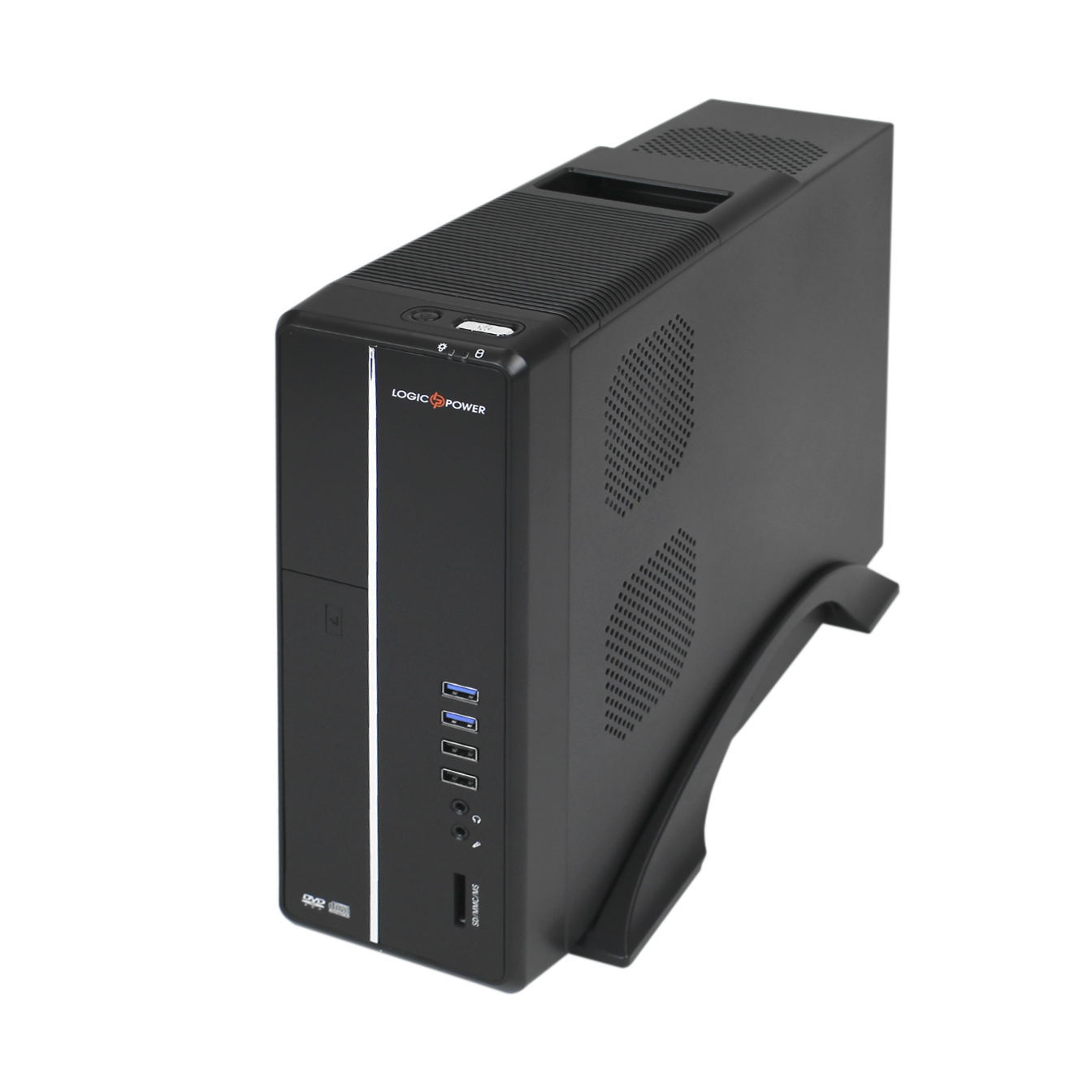 Одной из главных особенностей корпусов серии «Slim» является их отличная эргономичность и возможность установки всех необходимых системных элементов несмотря на весьма скромные размеры. Для большей устойчивости производитель оснастил LP S602 BS 400W Slim подставкой-держателем, которая гармонично вписывается в общий стиль изделия. Модель может устанавливаться как в вертикальном, так и в горизонтальном положении.