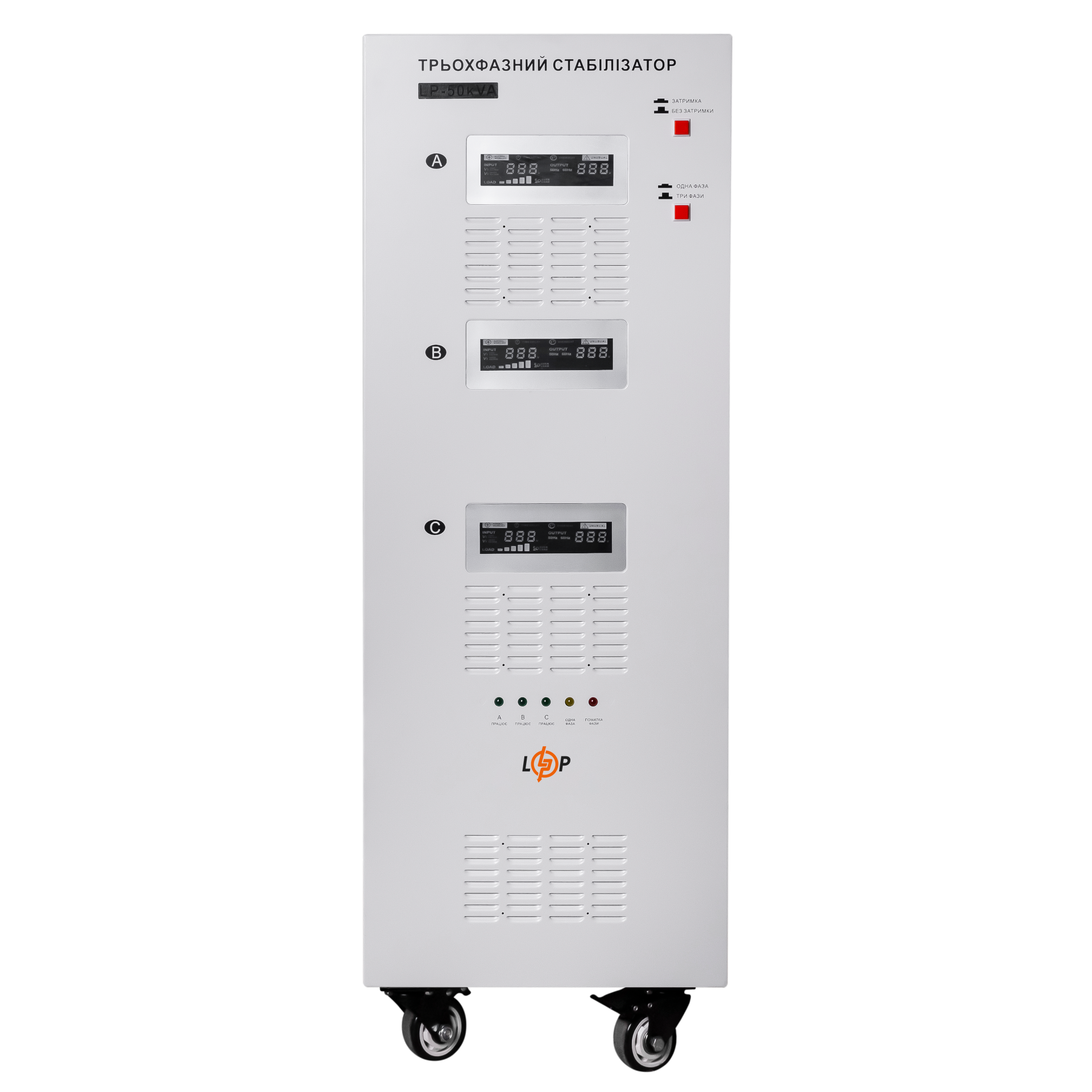 Промышленные объекты, современные жилищные комплексы, крупные общественные учреждения и т.д., как правило, оснащаются трехфазными источниками подачи питания электрической энергией с напряжением 380В. Стабилизатор напряжения LP-50kVA 3 phase (35000Вт) (трехфазный, сервоприводный) используется для защиты от перепадов напряжения, коротких замыканий, импульсных и других токовых помех в сетях электропитания такого типа.