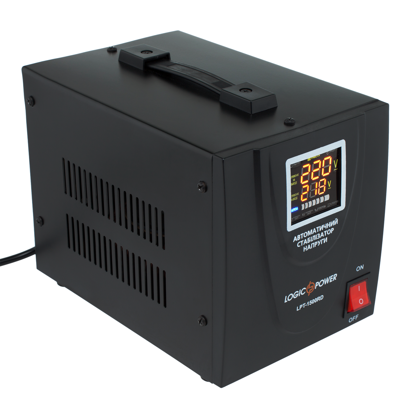 Представленное устройство — релейный стабилизатор напряжения LPT-1500RD BLACK