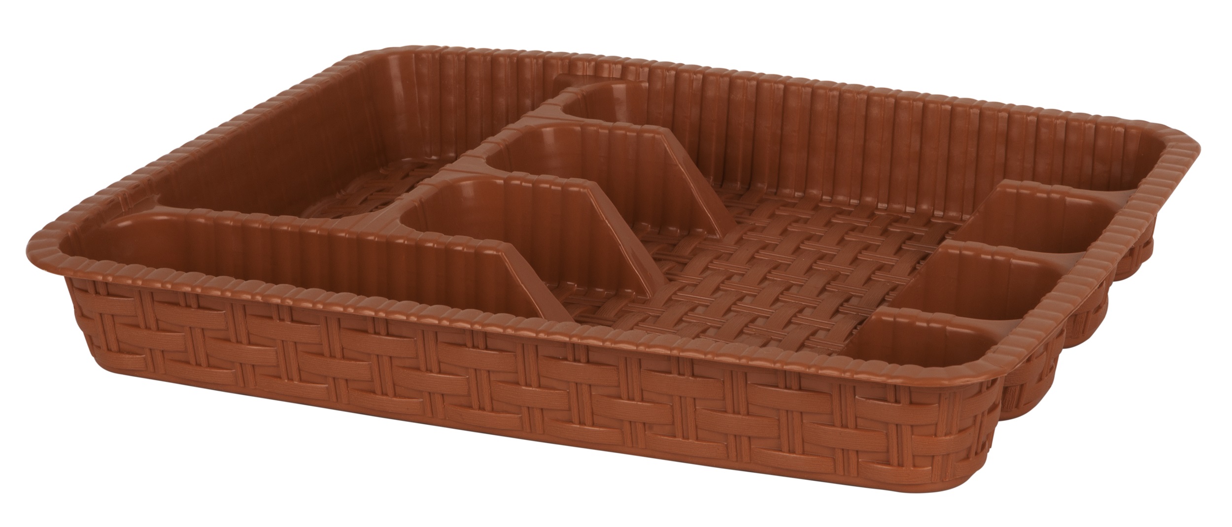 Лоток для столових приборів Violet House 0755 Роттанг CREAM. Розміри (ВхШхД): 29х37 см. Матеріал: поліпропілен. Форма: прямокутна. Колір: тепло-коричневий. Кількість в упаковці: 25 шт. Пластик. Виробництво Туреччина. Особливості: багаторазовий.