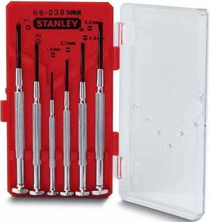 Набір викруток точної механіки Stanley Watchmaker; Кількість предметів: 6 шт.; Матеріал ручки: метал; Тип наконечника Хрестовий (Phillips/PH), Плоский (SL)