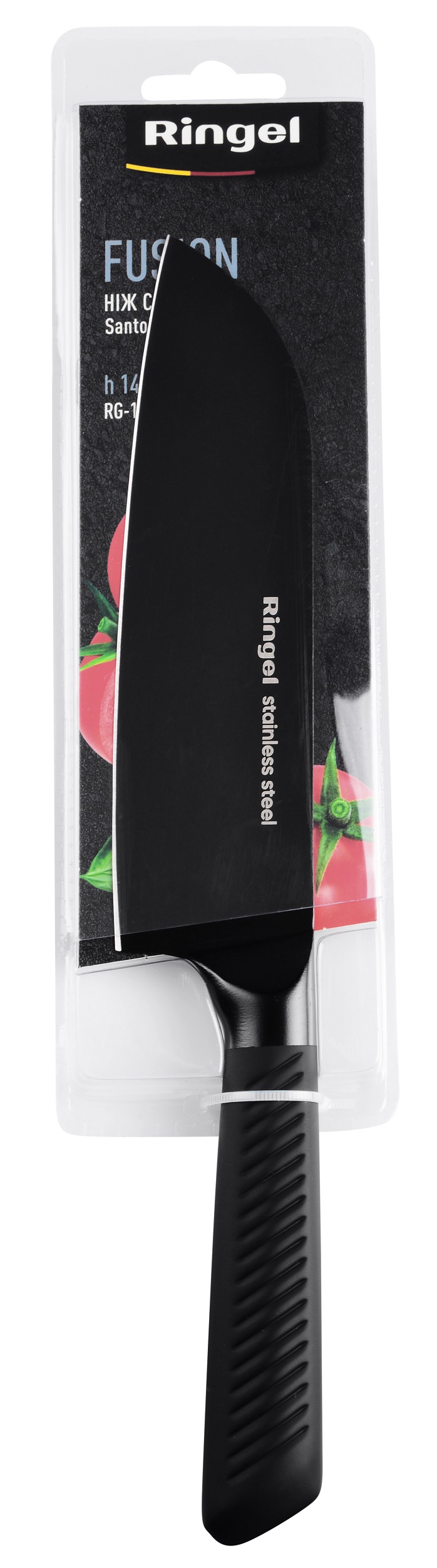 Ніж Fusion Матеріал леза: нержавіюча сталь Матеріал рукоятки: TPR Ріжуча крайка ножа: гладка Колір: чорний Призначення ножа: сантоку