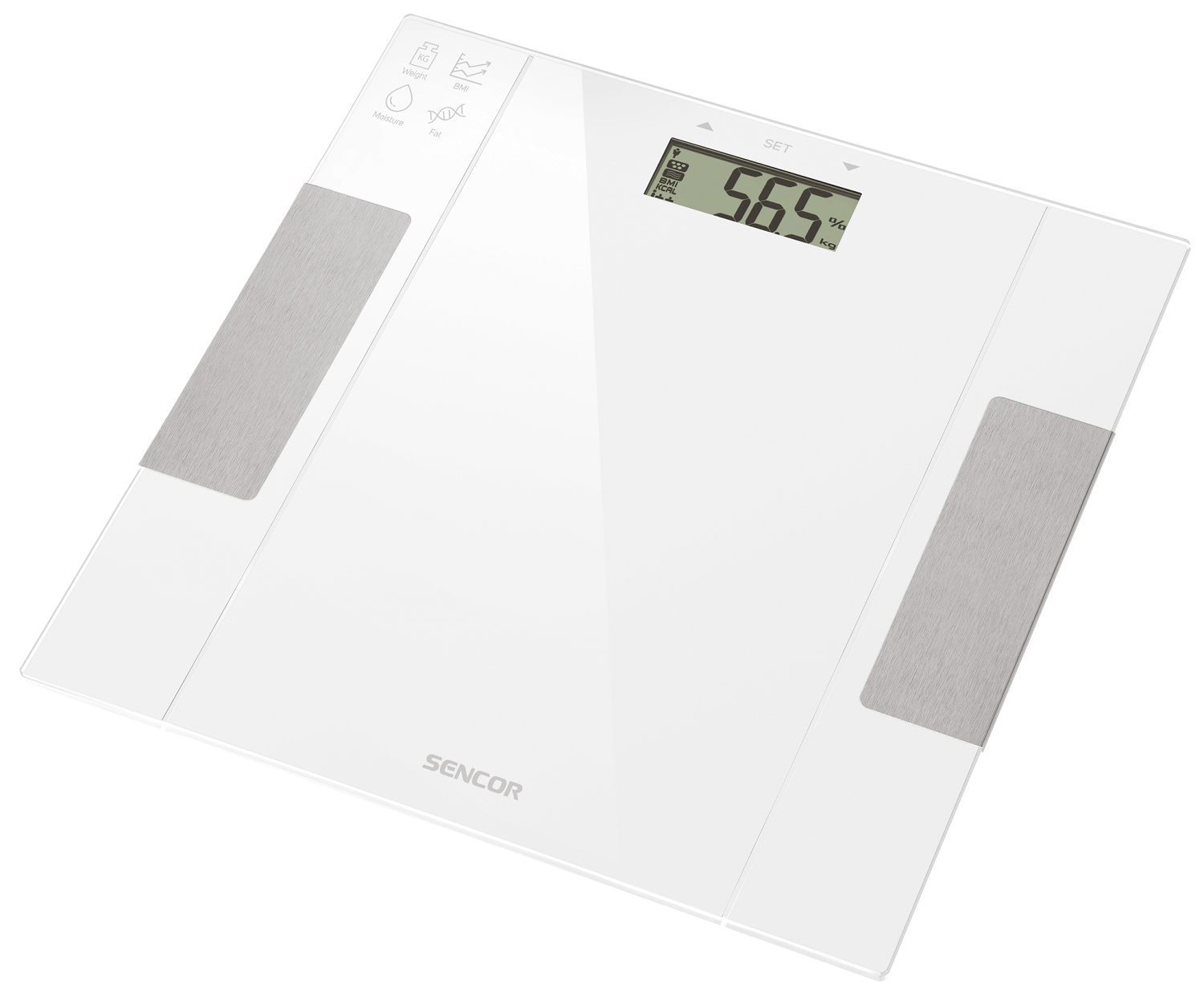Вимірює об'єм жиру і води в тілі за принципом BIA: